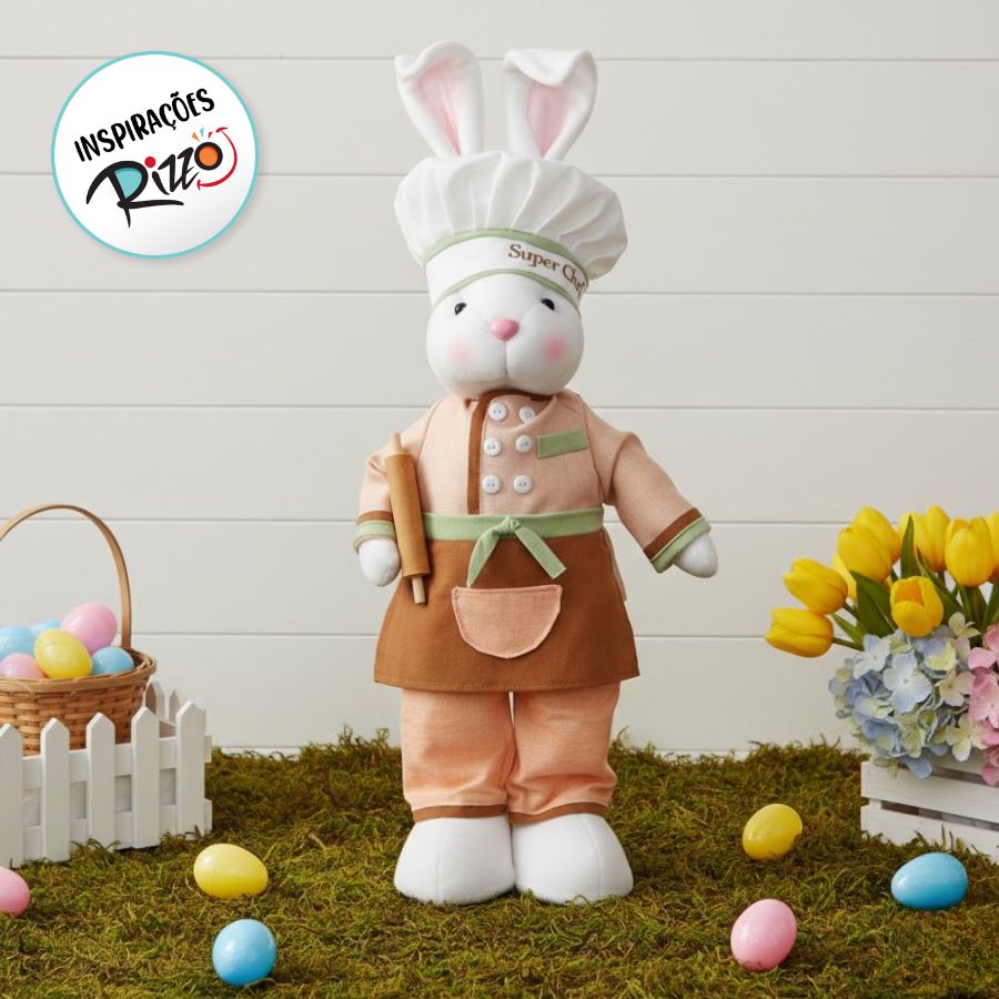 Coelho Chef em Pé Coral Marrom 53cm x 15cm - Cromus Páscoa - Rizzo Embalagens