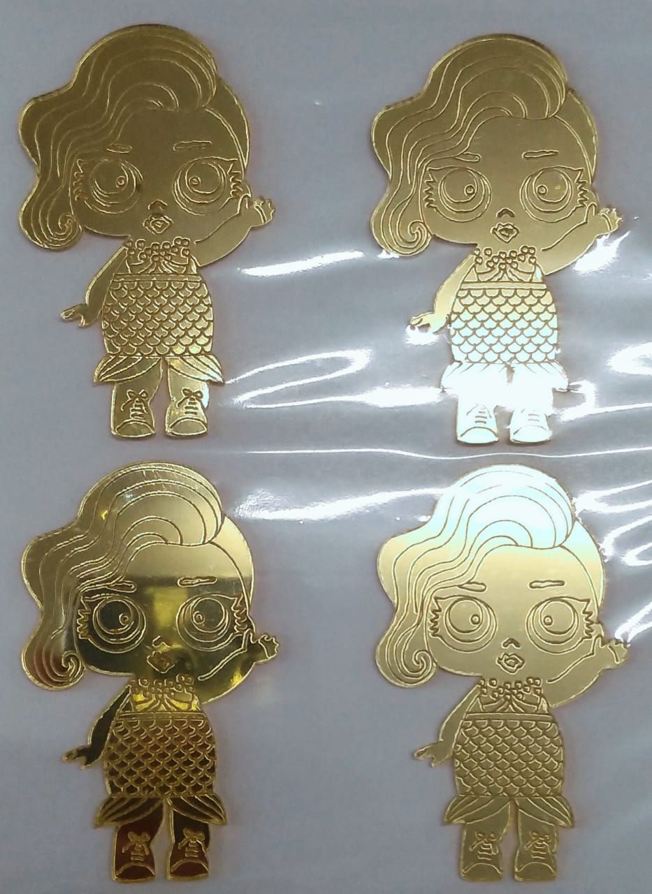 Aplique Doll Sereia Ace Dourado Festa LOL 7cm - 4 Unidades - Vivart Rizzo Festas