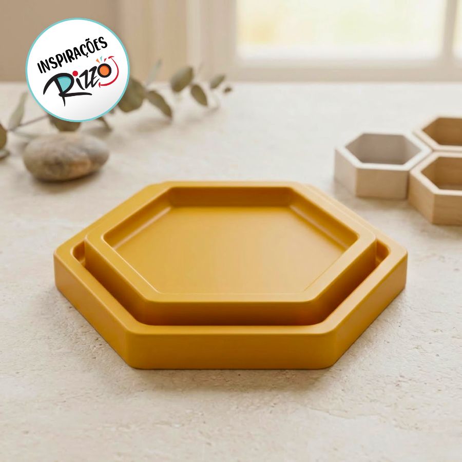 Bandeja Sextavada Mostarda - 01 unidade - Só Boleiras - Rizzo Embalagens