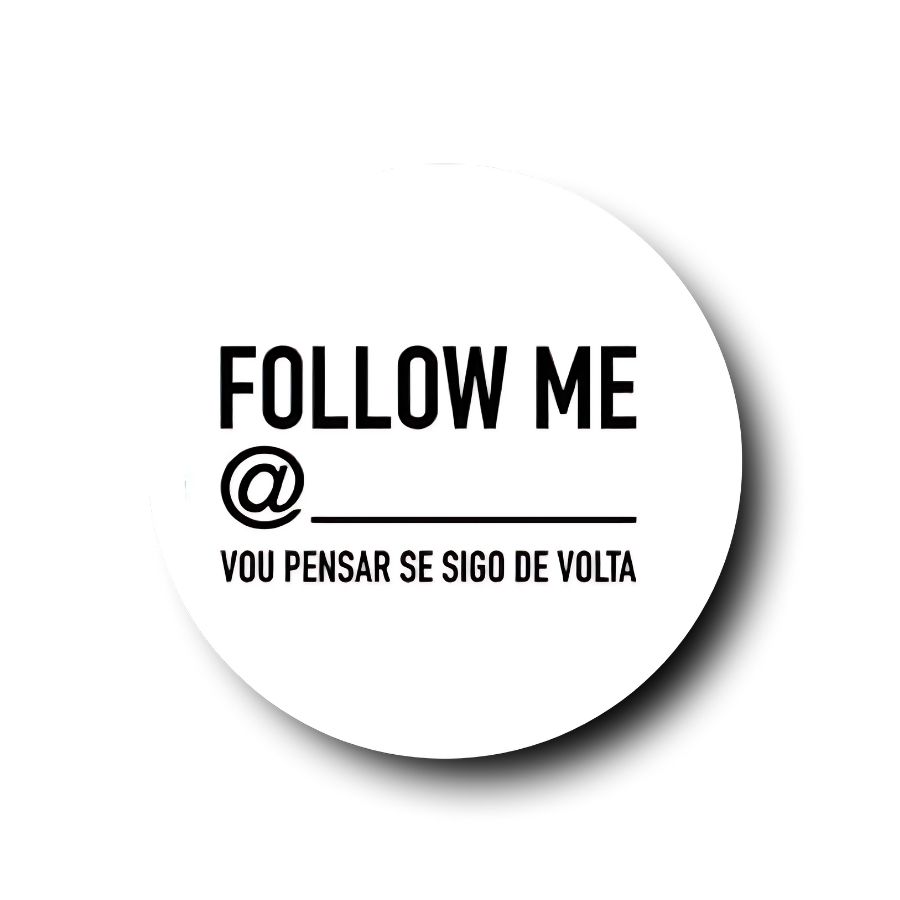 Adesivo redondo de Carnaval com a frase "Follow Me". Ideal para festas, blocos e fantasias, trazendo mais cor e diversão para a folia.