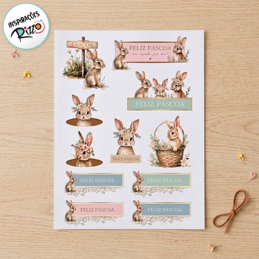 Cartela adesiva temática de Páscoa, perfeita para personalizar presentes e embalagens com estilo e delicadeza.