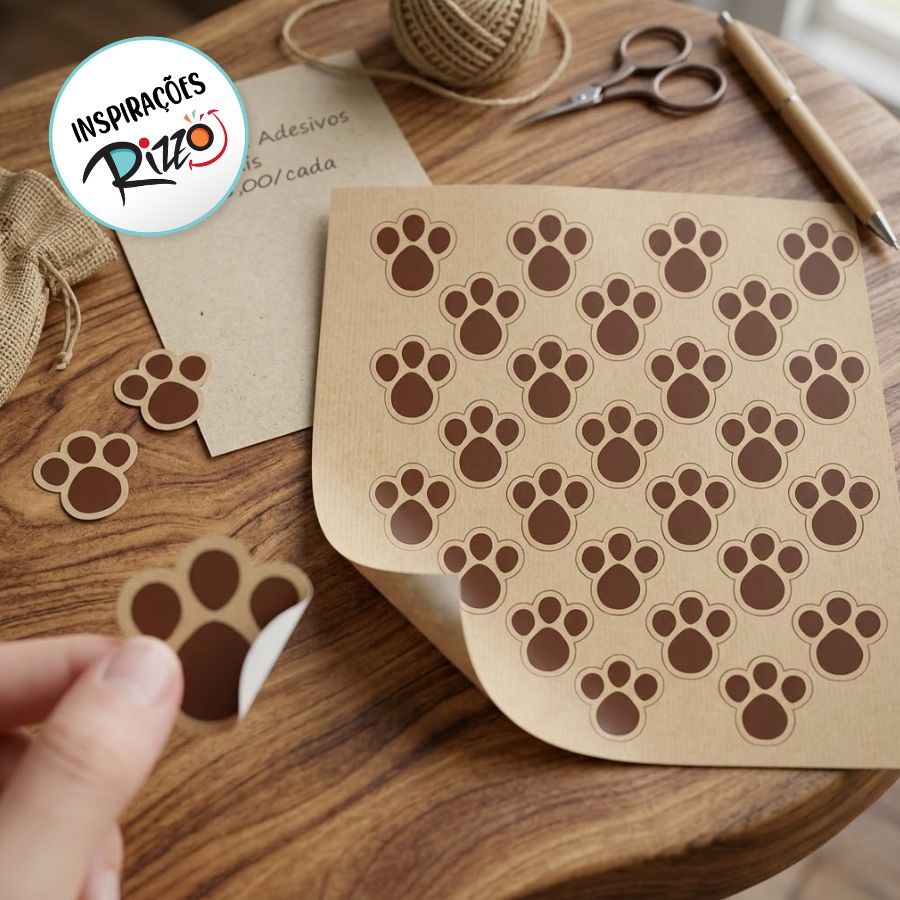 Cartela adesiva com pegadas, perfeita para personalizar presentes e embalagens de maneira charmosa e elegante.