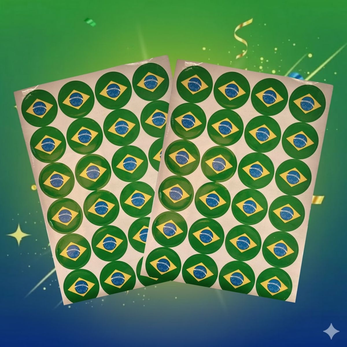 Adesivo Redondo - Bandeira do Brasil - Copa do Mundo - 4x4cm