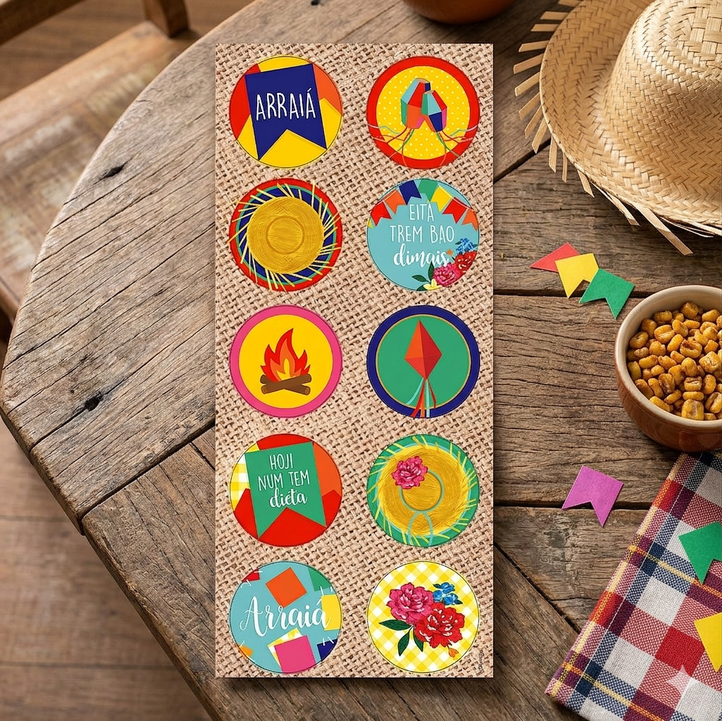 - 03 cartelas com 10 adesivos