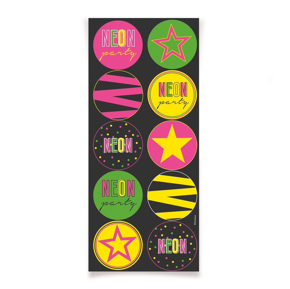 Utilize o Adesivo Redondo Festa Neon para colar nas lembrancinhas, latinhas e personalizados de sua festa.