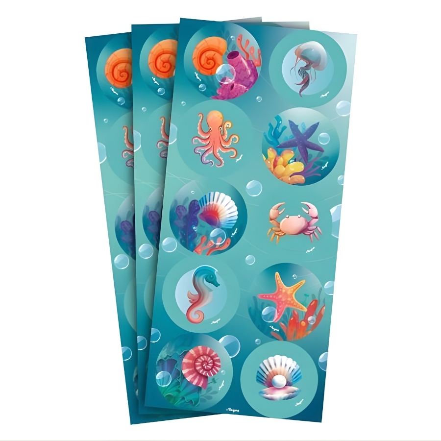 O Adesivo Redondo - Fundo do Mar é a escolha ideal para complementar sua decoração temática com um toque criativo e encantador. Inspirado no universo marinho, ele traz leveza e cor aos detalhes, valorizando embalagens e lembrancinhas de forma especial.