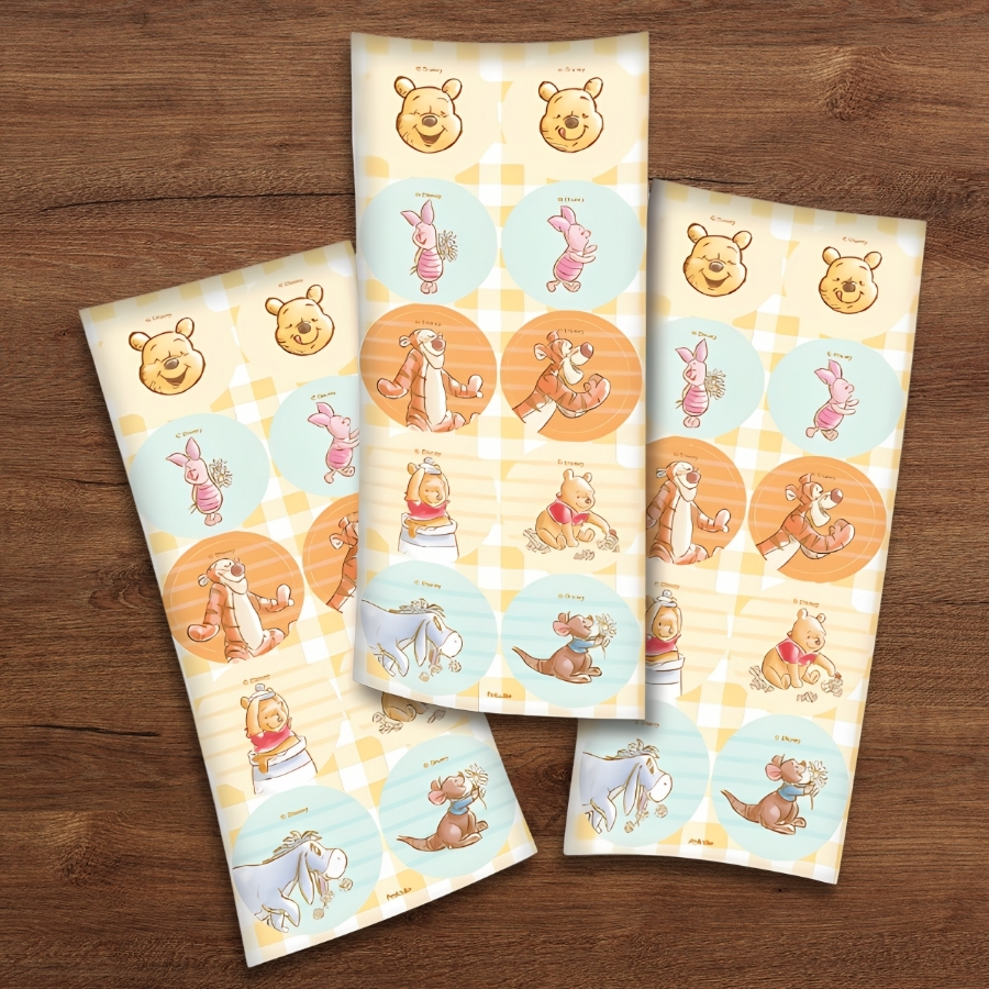 O Adesivo Redondo Ursinho Pooh possui 4cm, é fabricado em material adesivo de alta qualidade, com impressão colorida e durável. Ideal para festas infantis, decoração temática e projetos artesanais personalizados.