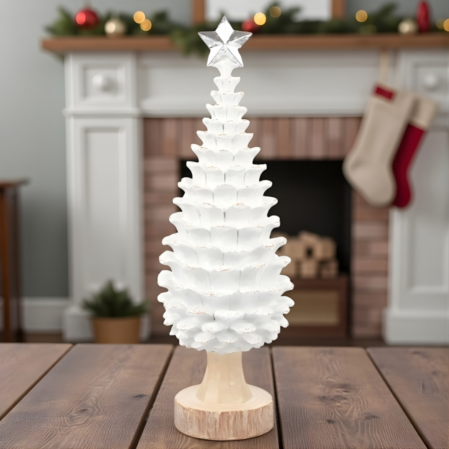 A Árvore Decorativa de Natal de Madeira com Base Rústica Branco 42,7x13cm é ideal para quem busca uma decoração natalina elegante e acolhedora. Seu acabamento em madeira com base rústica branca adiciona charme e sofisticação a mesas, aparadores e prateleiras.