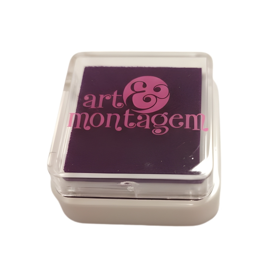 A almofada para carimbo possui cor roxa e dimensões aproximadas de 3,5x3,5cm. É indicada para aplicação de tinta em carimbos, auxiliando em marcações, personalizações e trabalhos manuais.