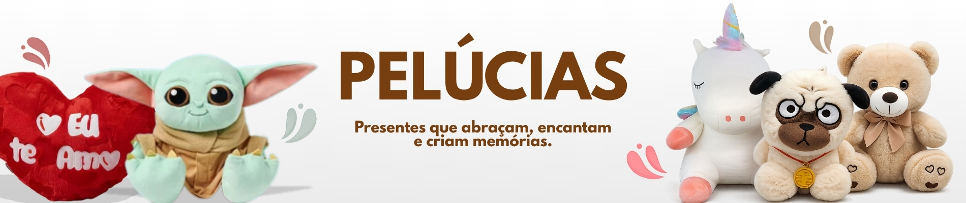 Destaque-se com nossas opções em formatos diferenciados, como almofadas de coração e designs exclusivos, ideais para montar kits personalizados e aumentar o valor percebido do seu presente.