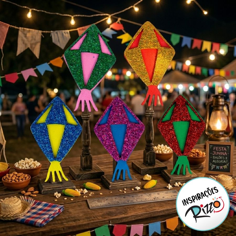 Um aplique de EVA em formato de balão com efeito glitter, ideal para decoração de festa junina.Perfeito para detalhes encantadores e festivos.. São cores diferentes e sortidas, contendo pares da mesma cor.