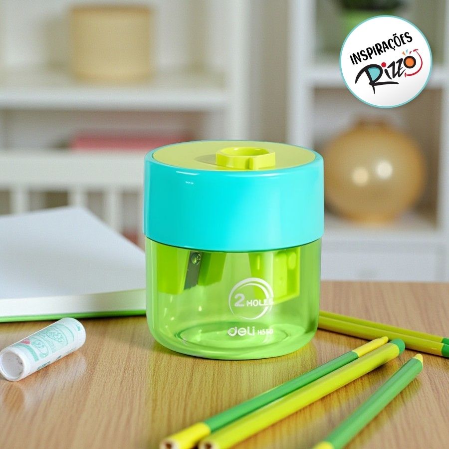 A Apontador 2 Furos com reservatório é ideal para quem busca praticidade e organização no dia a dia. Seu sistema de dois furos permite apontar lápis de diferentes espessuras com precisão, enquanto o compartimento interno armazena os resíduos, evitando sujeira. Na cor verde água, traz um visual moderno e delicado ao material escolar ou de escritório.