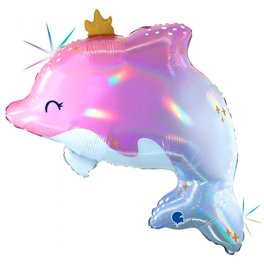 Balão de festa de 27 polegadas (69 cm) em forma de golfinho brilhante, perfeito para decorações de festas oceânicas ou temáticas marinhas.