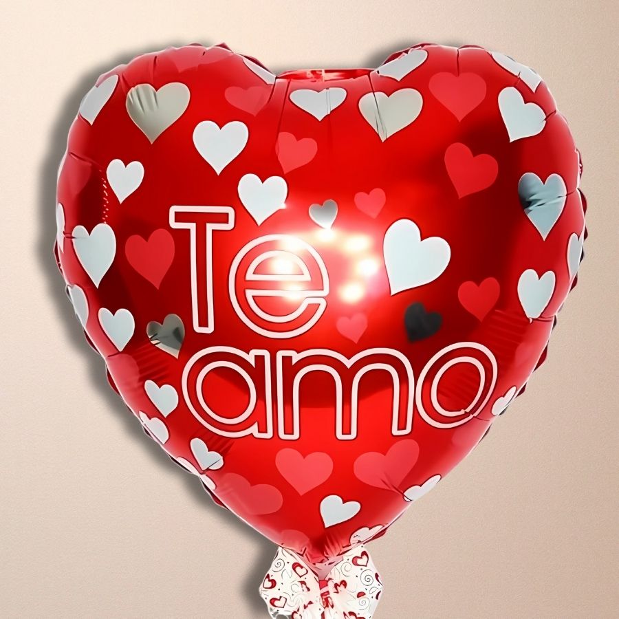 Balão foil metalizado em formato de coração com a frase "Te Amo". Tamanho grande, 45 cm. Contém 1 unidade. Pode ser inflado com ar ou gás hélio.