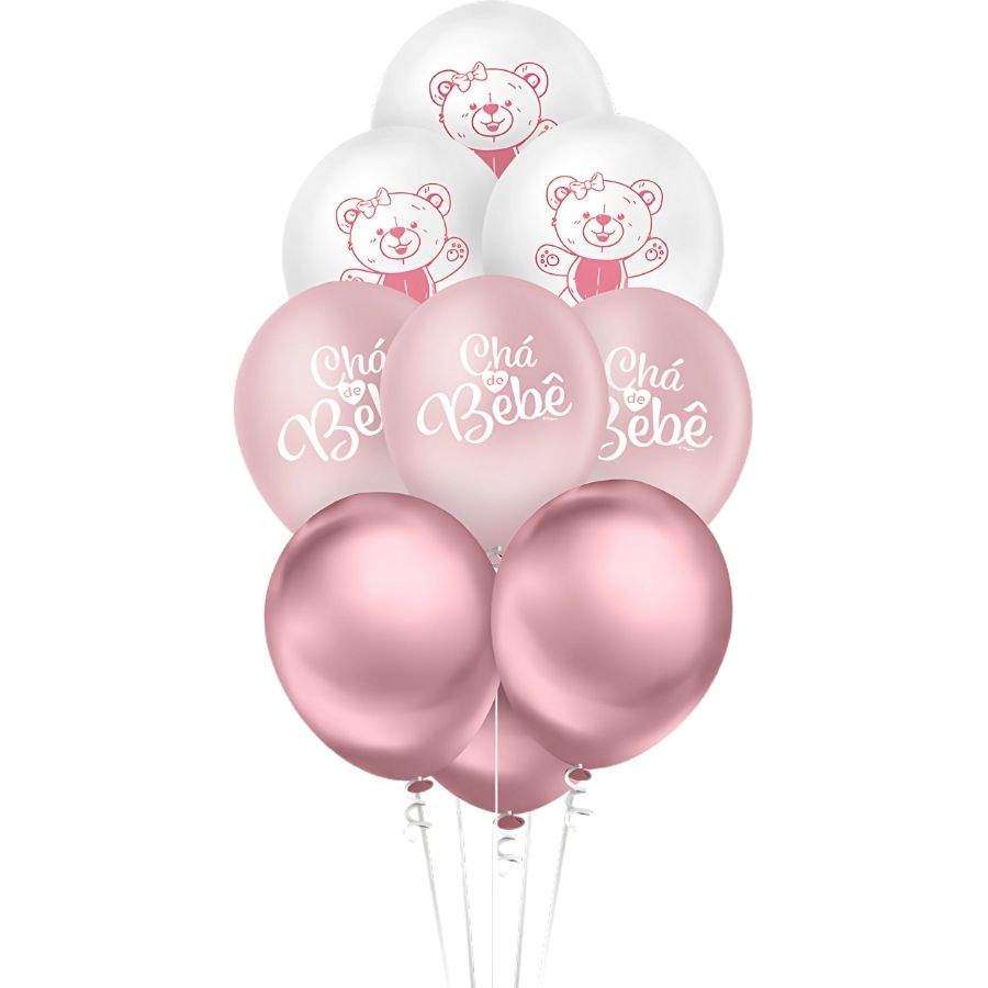 Balão Látex Chá de Bebê 9" (23cm) - Menina, ideal para festas infantis e decorações temáticas. Contém 10 unidades.