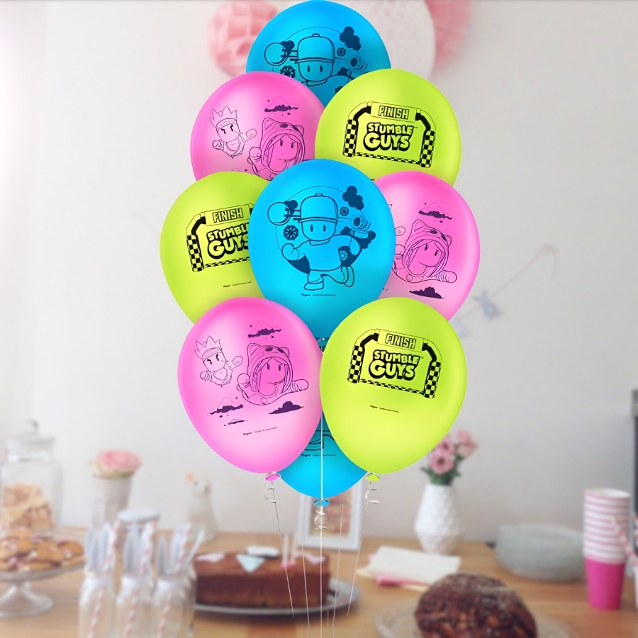 O Balão de Látex Redondo Stumble Guys possui 9 polegadas (23cm) e é fabricado em látex de alta qualidade, com impressão colorida dos personagens do jogo. Ideal para decorações de festas infantis, painéis temáticos e arranjos de balões, proporcionando beleza, praticidade e um toque lúdico ao evento.