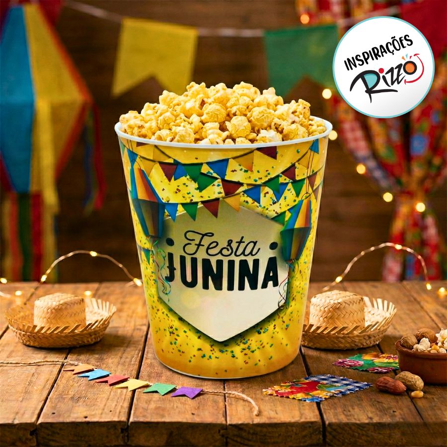 Este balde é perfeito para servir pipoca durante as festividades, proporcionando não apenas uma maneira conveniente de compartilhar esse petisco delicioso, mas também adicionando um toque especial à decoração da sua festa. Seja em uma festa junina tradicional ou em um evento temático, o Balde de Pipoca "Festa Junina Amarelo" é garantia de diversão e alegria para todos os convidados.