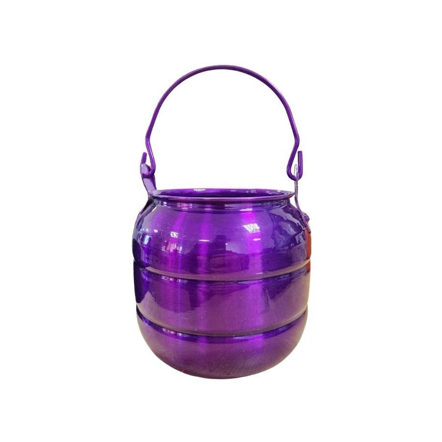 Seu design em forma de caldeirão, com alça prática e acabamento em tom roxo vibrante, proporciona um toque mágico e temático à fantasia. Além de funcional, o baldinho também serve como item decorativo para festas, mesas temáticas ou lembrancinhas criativas.
