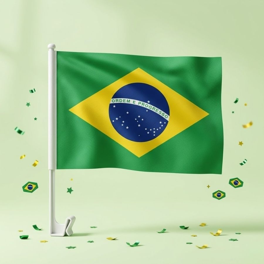 Com a bandeira automotiva do Brasil, você leva a energia da torcida para qualquer lugar, transformando seu veículo em parte da celebração. A bandeira do Brasil para carro é prática, resistente e ideal para demonstrar seu espírito esportivo durante a Copa, trazendo mais cor, alegria e identidade para qualquer trajeto.