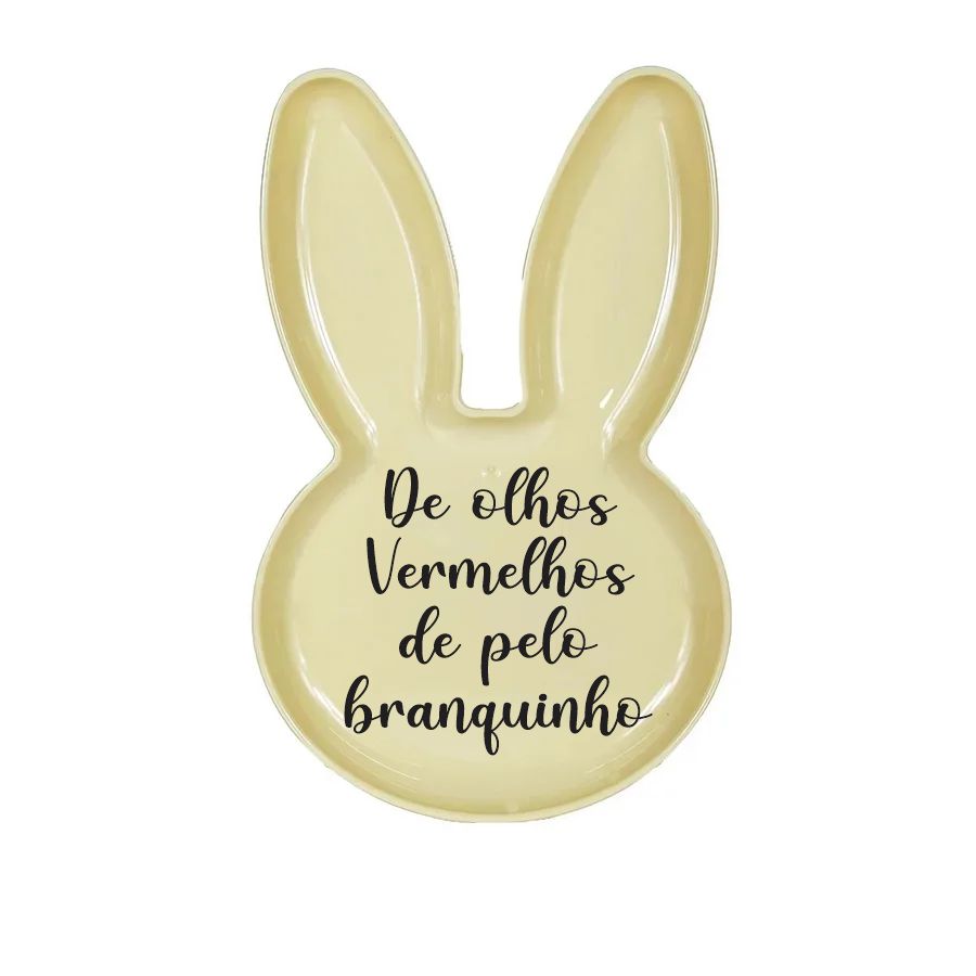 Bandeja Coelho com Frase de Páscoa - Amarelo - 25x15cm - 1 unidade - Rizzo