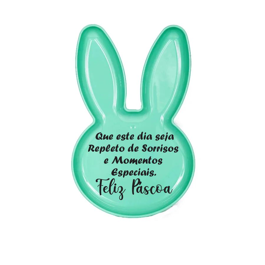 Bandeja Coelho com Frase de Páscoa - Verde Claro - 25x15cm - 1 unidade - Rizzo