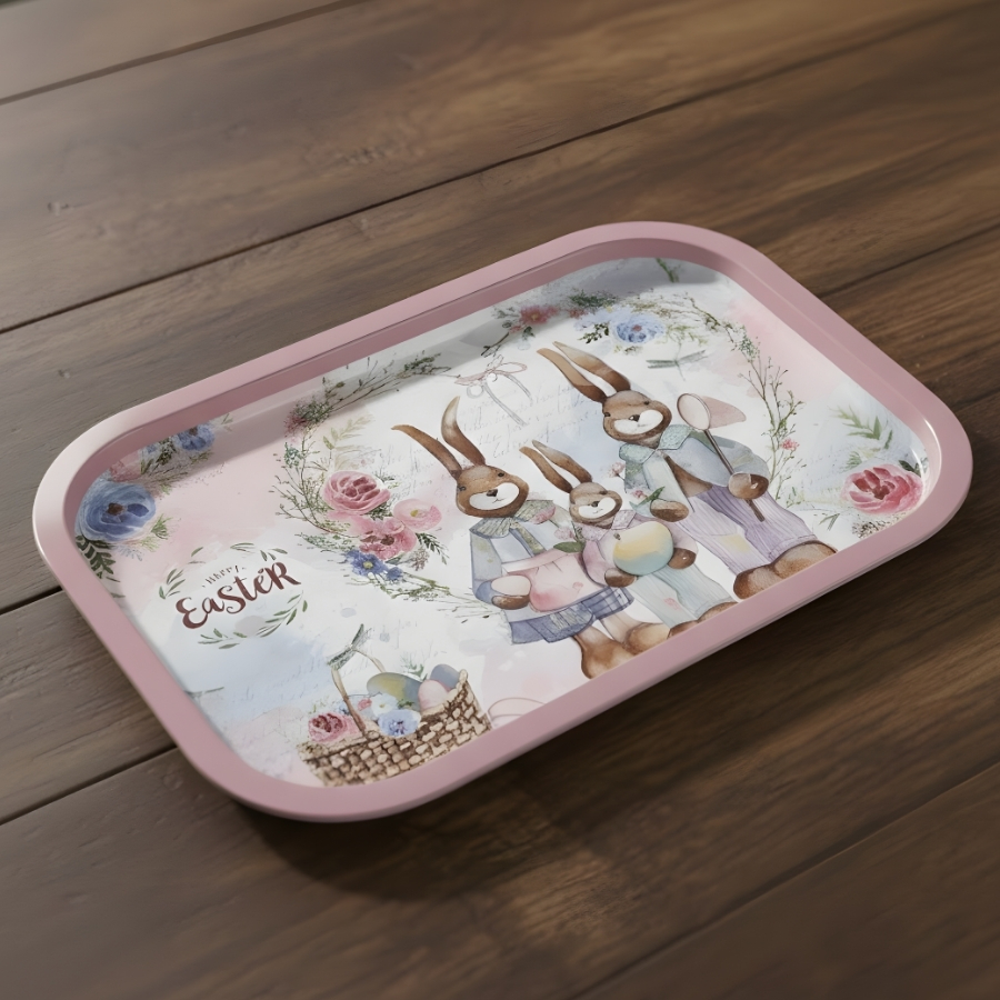 Indicada para uso decorativo em mesas, aparadores, balcões e vitrines, esta bandeja resolve a necessidade de reunir e valorizar elementos decorativos em um único espaço. A Bandeja Decorativa de Páscoa Família Coelho é ideal para quem busca praticidade aliada a um visual temático, facilitando a criação de cenários pascais harmoniosos.
