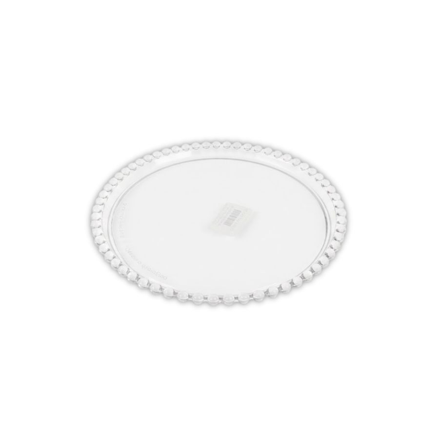 Bandeja redonda em acrílico transparente com 18x18cm, ideal para organizar doces, lembrancinhas e prendas em festas juninas, aniversários e eventos diversos. Prática, resistente e versátil.