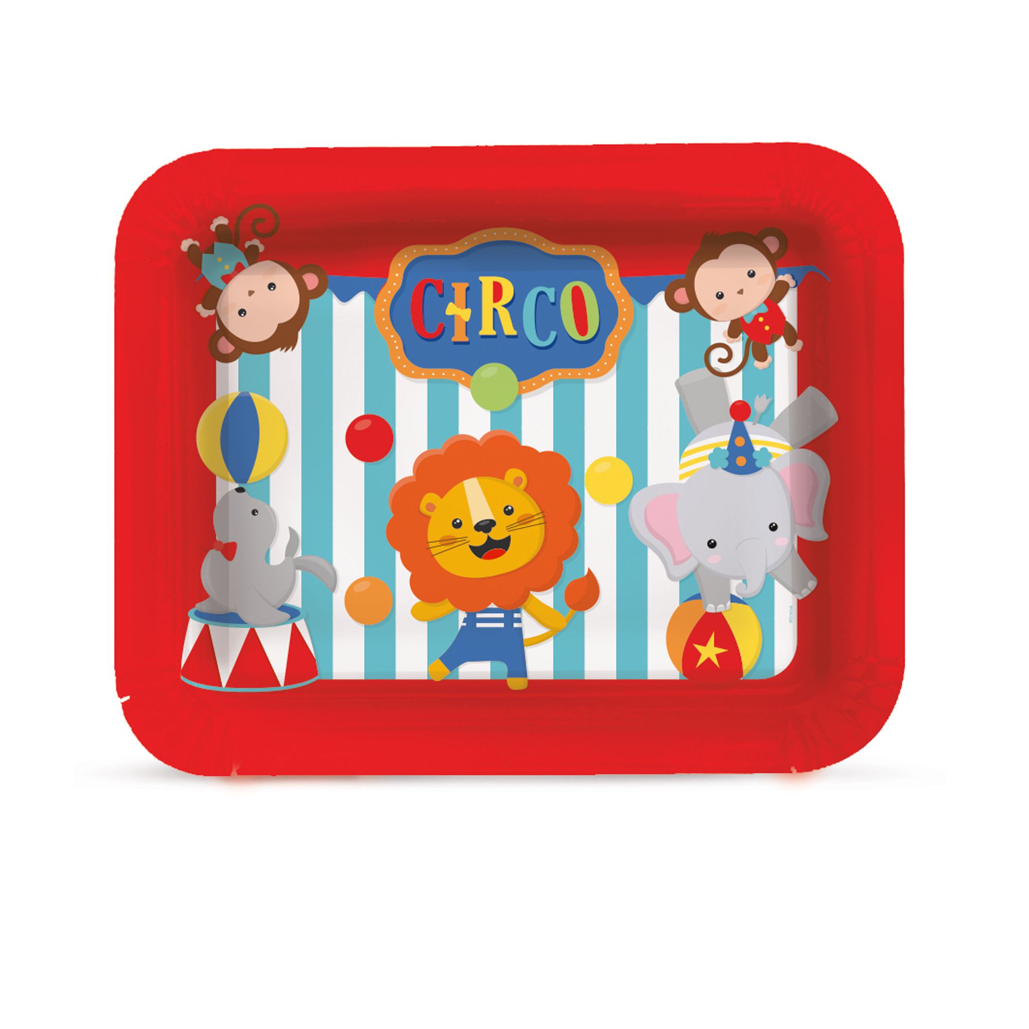 Utilize as Bandejas Festa Circo para colocar na mesa de comes e bebes, para servir salgados e doces ou na mesa principal para completar a decoração.