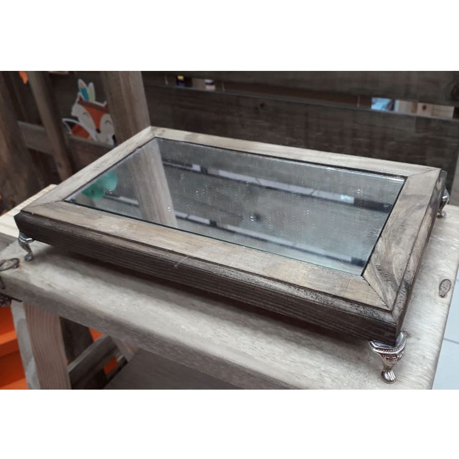 Bandeja Madeira com Espelho Pé Metálico Provençal - G 25x35cm - Rizzo Embalagens