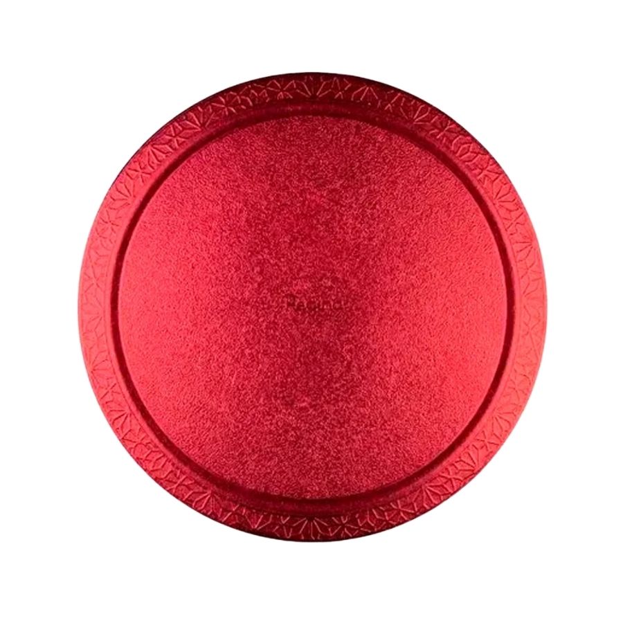 A Base para Bolo Cake Board Redondo na cor Vermelho Metalizado é ideal para valorizar a apresentação de bolos e doces em diversas ocasiões. Com diâmetro de 32cm, oferece excelente suporte e estabilidade, sendo perfeita para bolos médios e grandes. O acabamento metalizado proporciona um visual sofisticado e chamativo, destacando ainda mais a decoração do bolo.