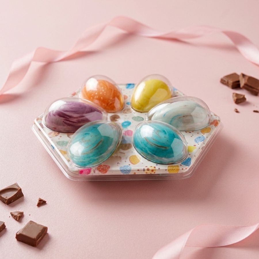 O Blister Bandeja 6 Ovos de Páscoa Colorido é a escolha vibrante para apresentar seus deliciosos chocolates. Com compartimentos individuais e cores alegres, essa embalagem adiciona um toque de festividade à sua produção artesanal.