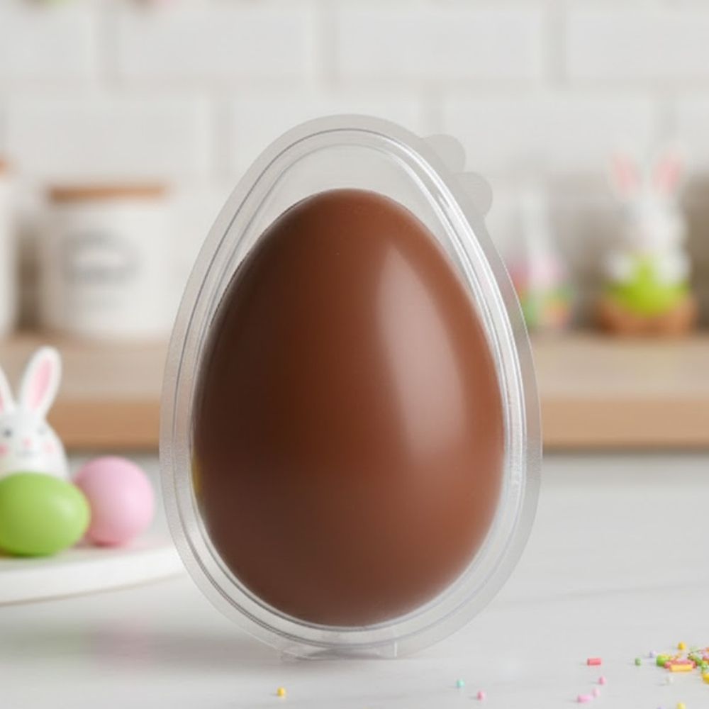 Indicado para produções artesanais ou comerciais, o blister para ovo de Páscoa auxilia na manutenção do formato da casca, oferecendo mais segurança durante o manuseio e transporte. É uma solução simples e eficiente para garantir acabamento profissional e facilitar a finalização da embalagem.