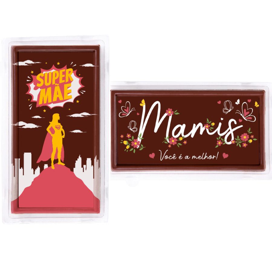 O Blister Decorado com Transfer para Chocolate - Tablete - Mães é a escolha ideal para fazer deliciosos tabletes de chocolate decorados para presentrear as Mães e figuras maternas que nos cercam. Eles trazem a figura de uma heroína, assim como as Mães são e também trazem uma forma carinhosa de nomea-las.