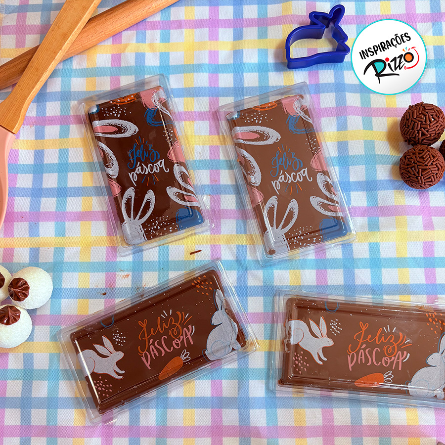 Ideal para quem deseja decorar seus tabletes de chocolate de maneira rápida e prática, esse produto oferece uma forma simples de adicionar um toque especial aos chocolates, tornando-os perfeitos para presentes ou para as celebrações de Páscoa. Para usar basta despejar o chocolate e levar para a geladeira por 30 min, retire o chocolate do plástico e o trabalho está pronto.