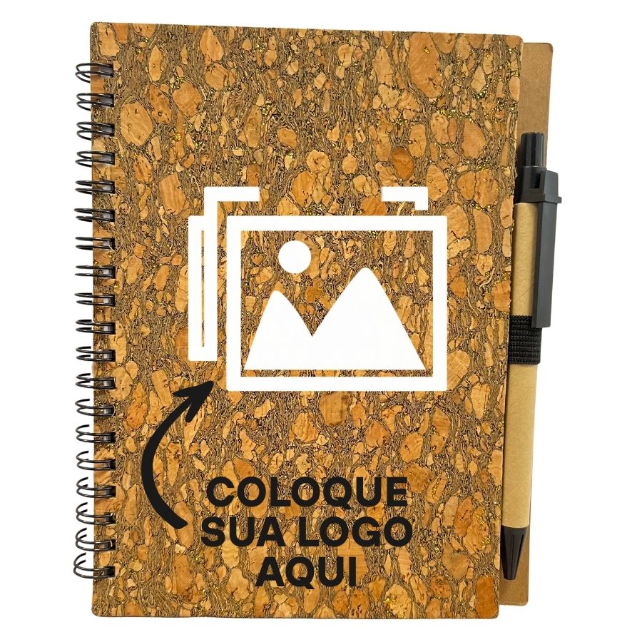 Bloco com 70 folhas, personalização apenas com logo branco, capa rústica e caneta inclusa. Um brinde prático e elegante.