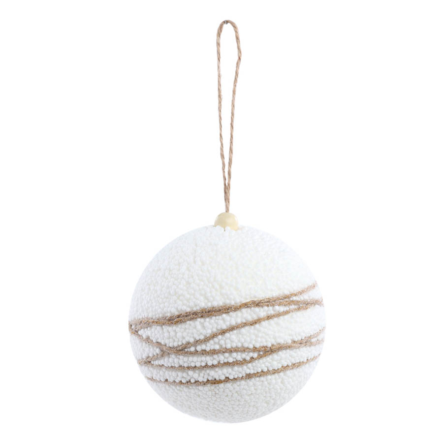 Esta bola de 10cm une a rusticidade da juta com a leveza das bolinhas brancas, criando um visual campestre sofisticado. Ideal para decorar Árvores de Natal com um tema mais natural ou para integrar arranjos de mesa aconchegantes.