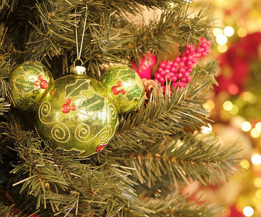 Bola de Vidro Mickey Azevinho 8cm - 02 unidades - Natal Disney - Cromus - Rizzo Embalagens