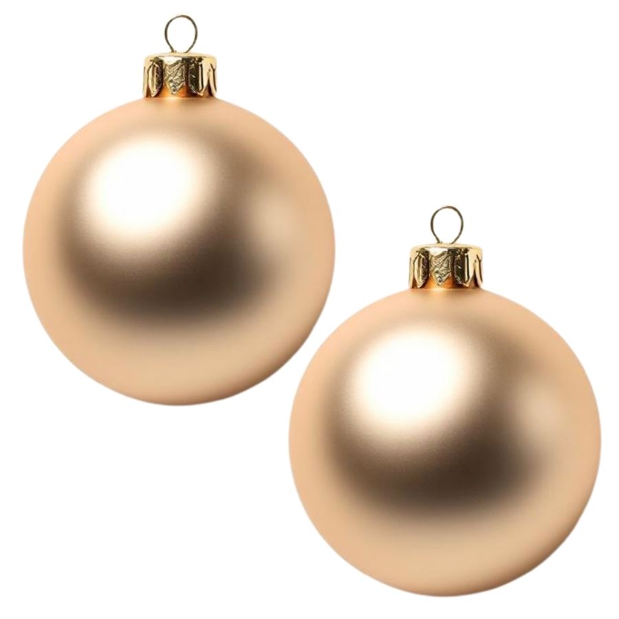 Bolas de Natal Champagne em variados acabamentos e tamanhos. Os tons podem variar, conferindo elegância e charme à decoração natalina.