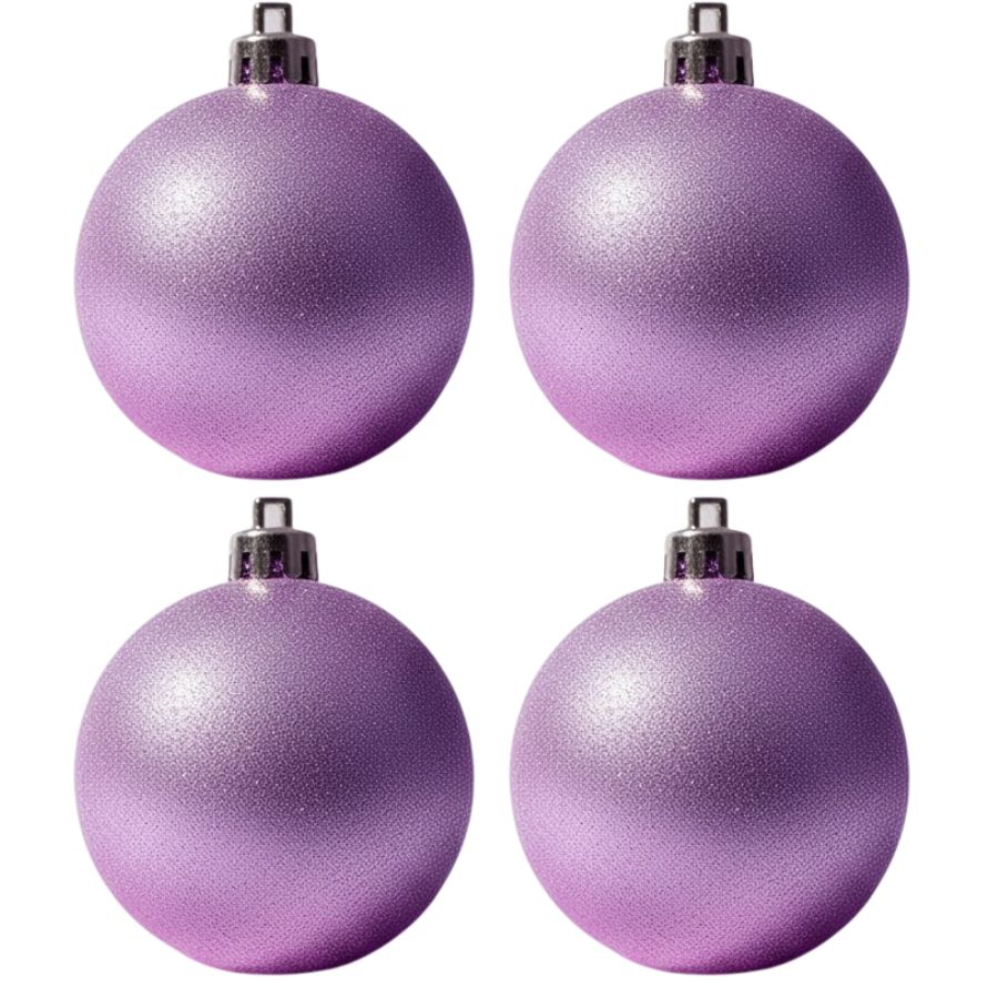 Bolas de Natal lilás em diferentes tamanhos, ideais para decoração de árvores, guirlandas e arranjos festivos. Os tons de lilás podem variar.
