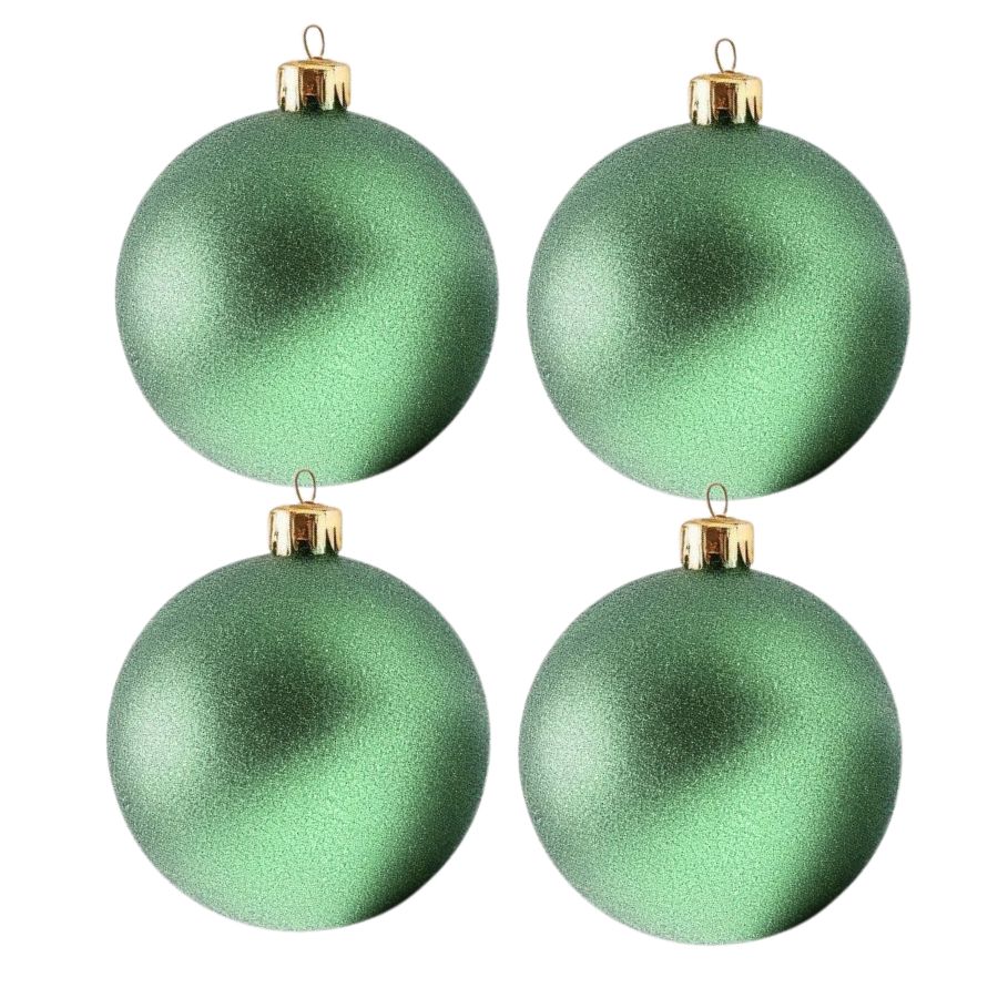 Bolas de Natal verde claro em diferentes tamanhos, ideais para decoração de árvores, guirlandas e arranjos festivos. Os tons de verde claro podem variar.