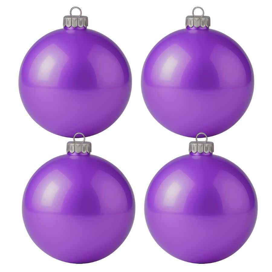 Bolas de Natal roxa em diferentes tamanhos, ideais para decoração de árvores, guirlandas e arranjos festivos. Os tons de roxo podem variar.