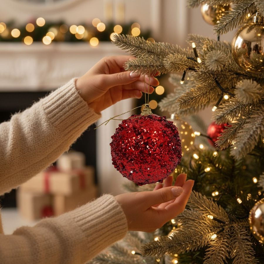 A Bola de Natal Vermelha com Glitter de 10cm é uma escolha clássica e elegante para deixar sua decoração natalina mais brilhante e acolhedora.