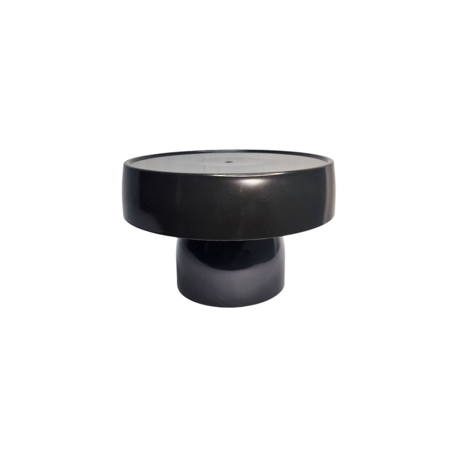 Boleira em poliestireno, formato cogumelo, cor preta. Medidas: 18,5x12,5cm. Leve e resistente, perfeita para servir doces com estilo em mesas decoradas e eventos.