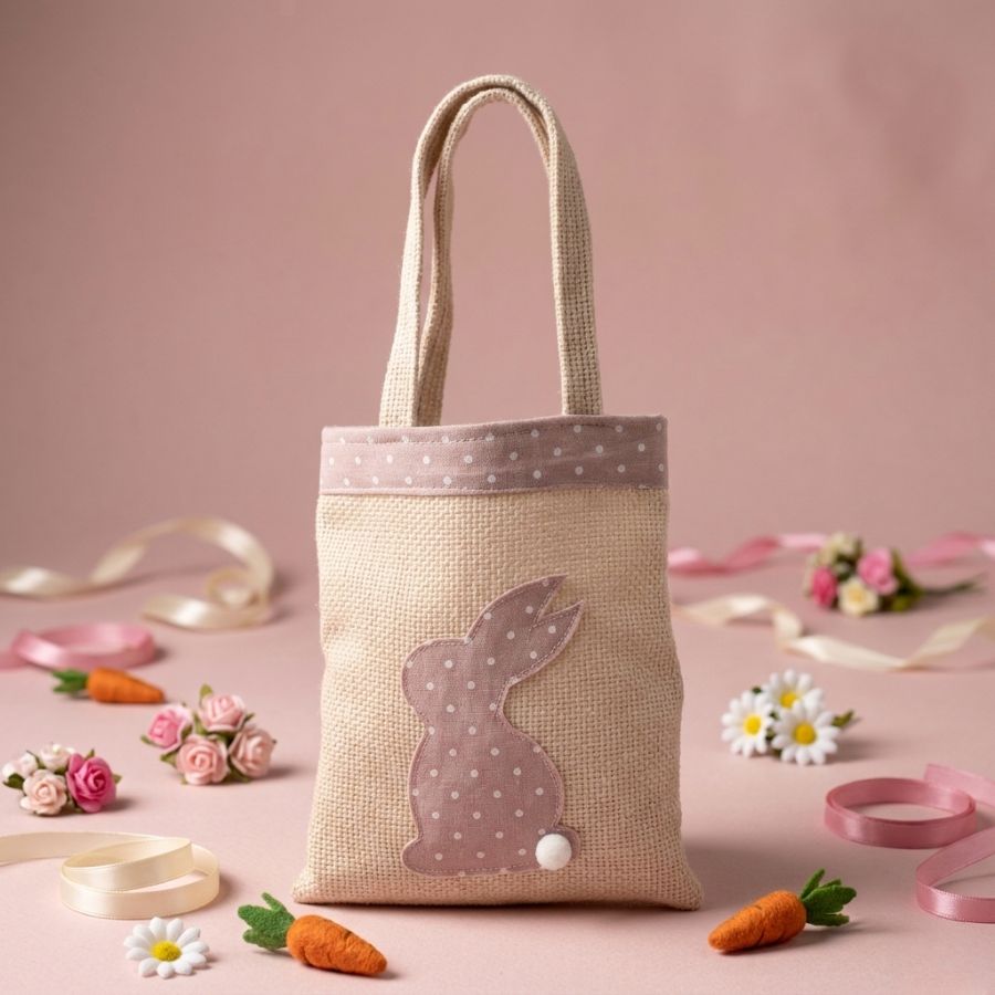 As duas alças rosa proporcionam uma abordagem visual suave, enquanto o pompom na cauda da silhueta acrescenta um toque de diversão e estilo à bolsa. Com dimensões de 20x18cm, esta bolsa é ideal para carregar pequenos objetos ou ser usada como uma peça encantadora para a Páscoa. Seja como parte da sua vestimenta festiva, uma bolsa de presentes ou um acessório decorativo, a "Bolsa de Tecido Silhueta de Coelho Pontilhada" é uma escolha adorável para adicionar um toque especial à sua celebração de Páscoa.