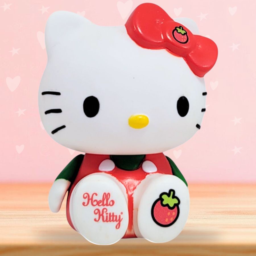 A Boneca Frutinhas Hello Kitty de Vinil - Morango encanta pelo visual delicado e pelo cheirinho doce que lembra morango! Com 11cm de altura, é feita em vinil atóxico, tem cabeça e braços articulados e faz parte de uma linha colecionável adorável da personagem mais fofa do mundo.