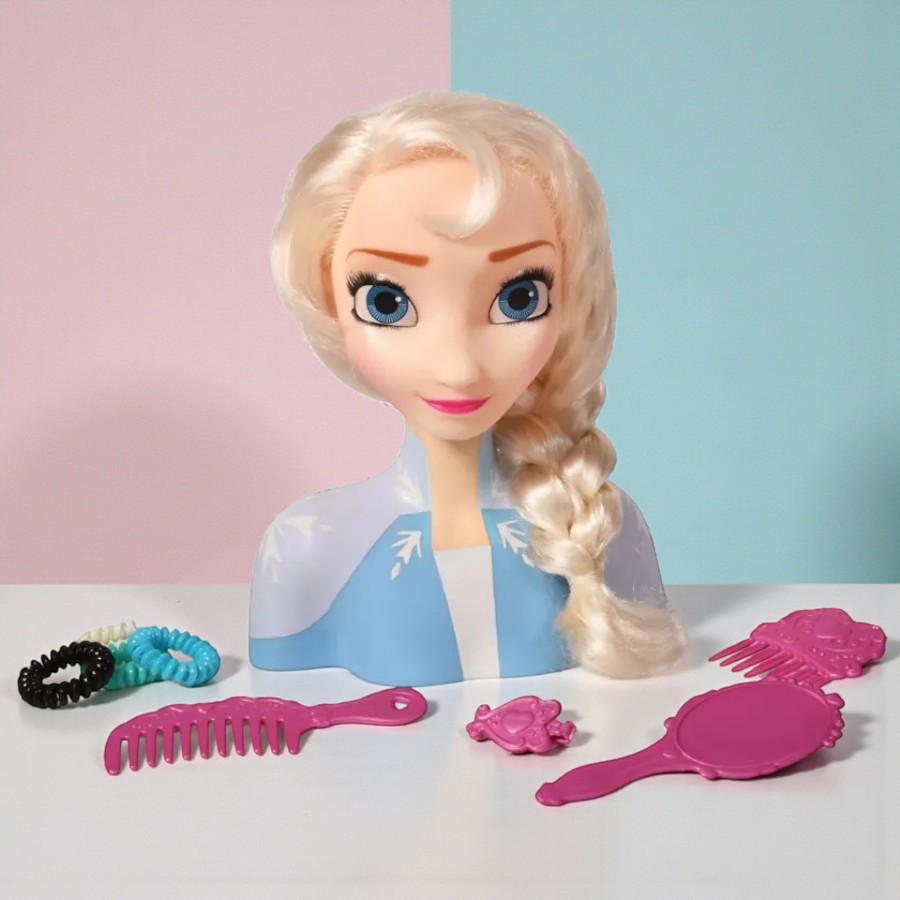 A Boneca Styling Head inspirada na Elsa Disney, do universo Frozen, é perfeita para estimular a criatividade infantil por meio de atividades de penteado, cuidado e faz de conta. Desenvolvida no formato de busto de boneca para penteado infantil, a peça permite criar diferentes estilos de cabelo, incentivando a imaginação e a expressão pessoal durante a brincadeira. O cabelo solto possibilita explorar penteados variados, inspirados no visual marcante da personagem, tornando a experiência ainda mais envolvente. Indicada para brincar e também para compor a decoração de quartos infantis ou espaços temáticos, a boneca conecta a criança ao universo mágico de Frozen, transformando momentos simples em experiências criativas e cheias de fantasia, sempre inspiradas na Elsa Disney.