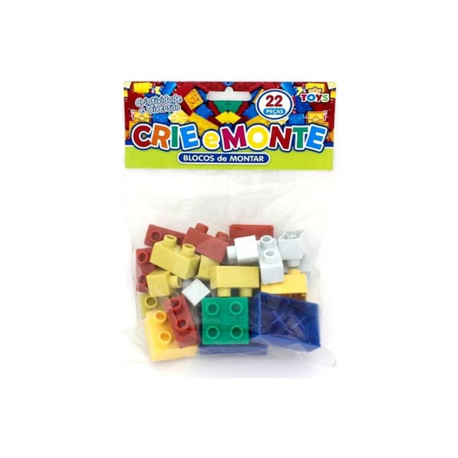 Kit com 22 blocos de montar coloridos que ajudam a desenvolver criatividade, coordenação motora e raciocínio lógico de forma divertida.