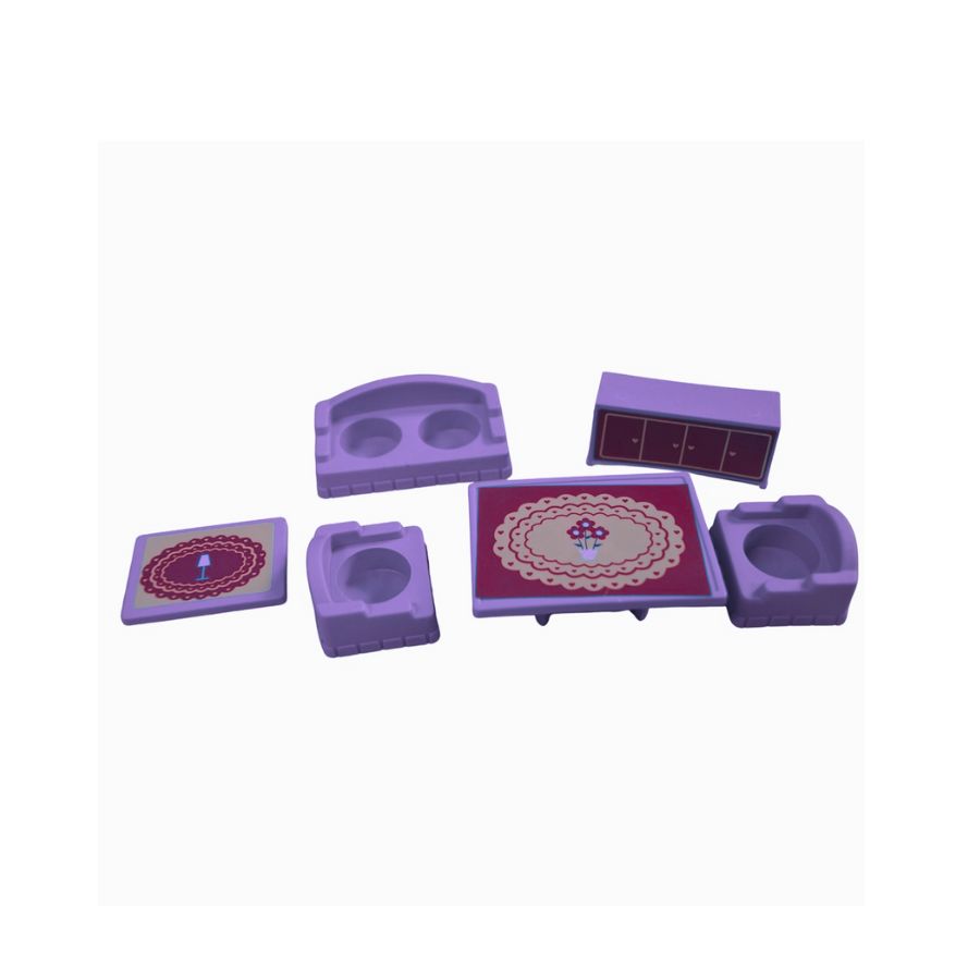 Miniatura de móveis de sala em cores sortidas, ideal para brincadeiras criativas e casinhas de boneca.