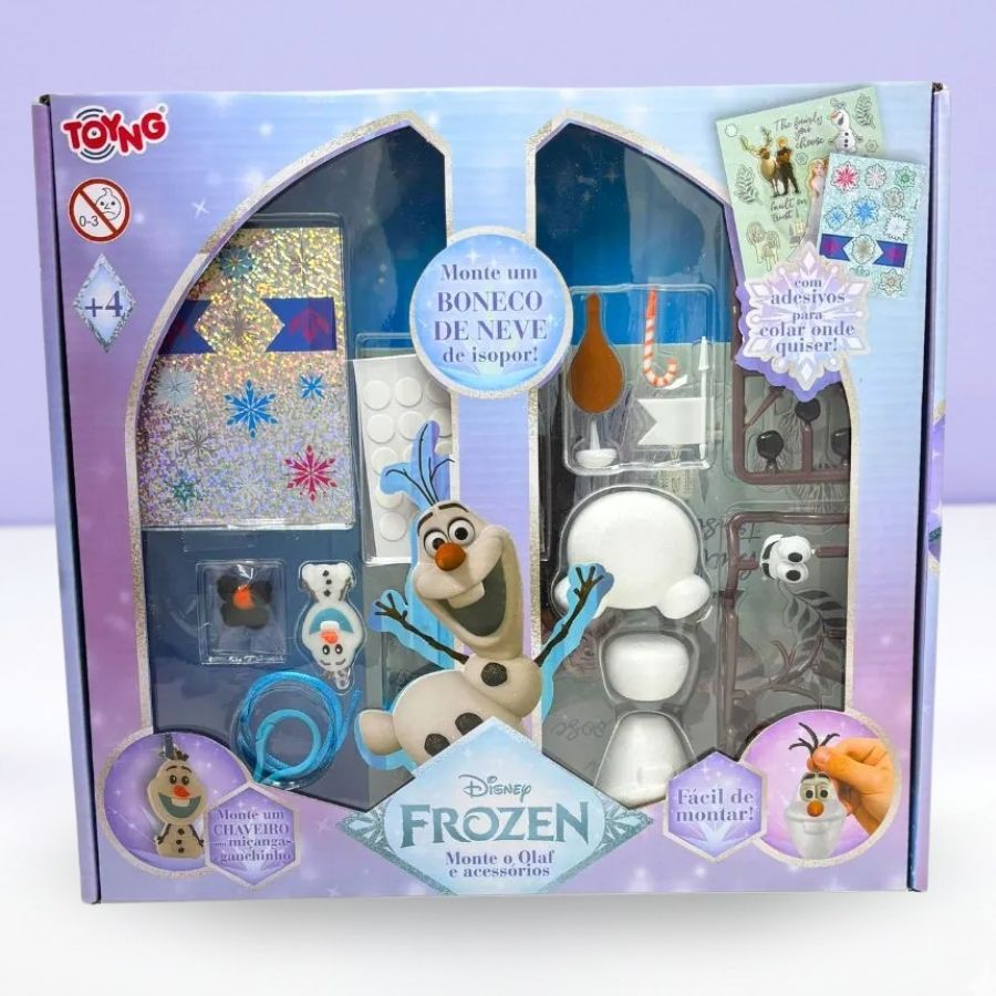 O Brinquedo Olaf Monta e Desmonta com Chaveiro do Olaf Disney propõe uma atividade criativa e interativa inspirada no universo de Frozen. A brincadeira consiste em montar um boneco de neve em isopor, formando o Olaf Disney a partir de suas partes, como cabeça, tronco e pernas, criando diferentes composições visuais. O kit inclui adesivos que podem ser colados onde quiser, permitindo personalizar o visual do personagem e explorar a criatividade durante a montagem. O formato desmontável possibilita montar e desmontar quantas vezes desejar, tornando a atividade dinâmica e envolvente, ideal para quem gosta de criar e reinventar personagens do mundo Disney.