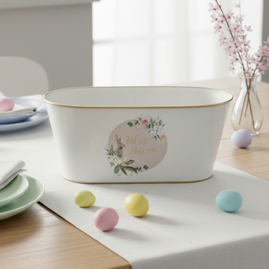Cachepot de metal com alça para usos diversos, seja para abrigar doces, vasos de planta, uma bela composição de suculentas, ovos da páscoa, entre outros!